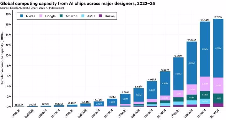 The AI growth isn’t operating on magic; it’s operating on uncooked {hardware}. The worldwide compute energy devoted to AI has grown by 30 instances since 2021. And sitting on the throne of this empire is Nvidia, holding over 60% of the world’s AI compute capability. They aren’t simply promoting the pickaxes for the gold rush; they personal your complete mountain.