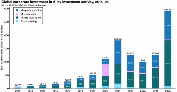 If you wish to know the place the longer term is heading, comply with the cash. Complete world AI funding shattered data, surpassing $581 billion, which is greater than double the earlier 12 months. Analysts are already projecting it to hit $700 billion quickly. The monetary world is betting every part on this know-how.