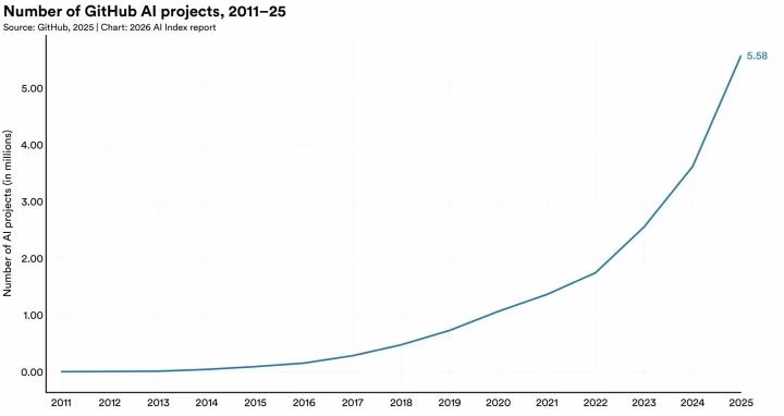 On GitHub, there at the moment are 5.58 million AI-related initiatives. It is a 23.7% bounce from final 12 months alone. And importantly, I observed the report emphasizes these aren’t simply low-quality, AI-generated spam repositories. Actual, human builders are deeply integrating AI instruments into their each day coding workflows.