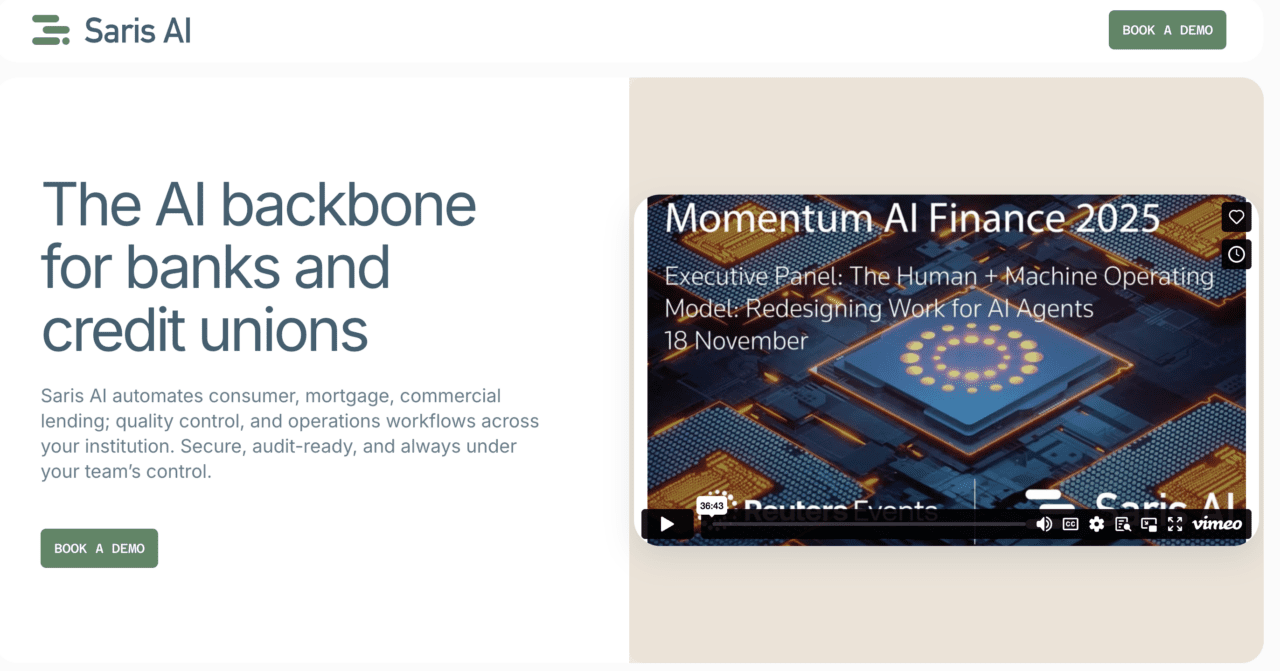 Based in 2024 and headquartered in San Francisco, California, Saris AI is an agentic AI resolution that builds and launches AI brokers to automate back-office workflows. The corporate helps banks and credit score unions scale their operations with out including headcount by automating 90% of their duties with zero change administration.
