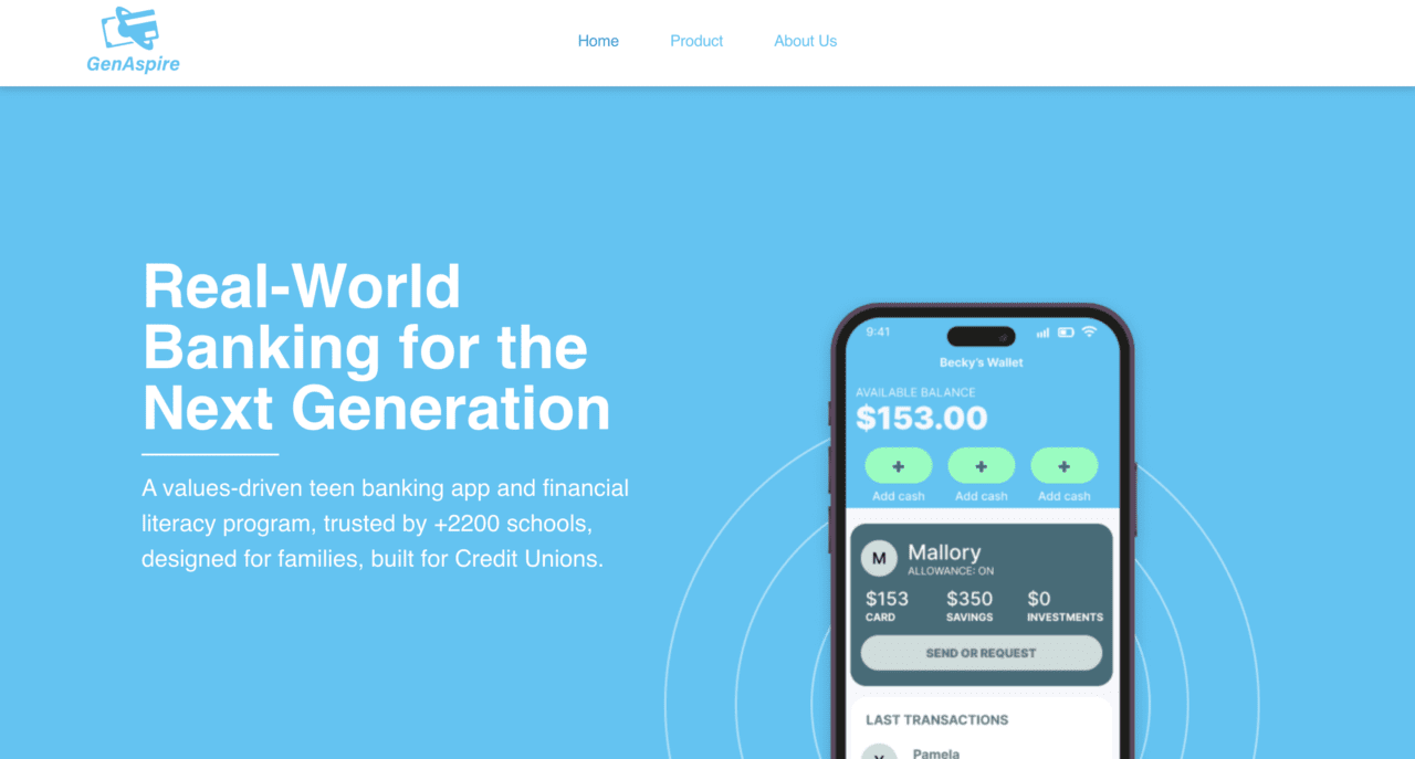 GenAspire gives real-world banking for the following era. The corporate’s values-driven teen banking app and monetary literacy program is trusted by greater than 2,200 faculties, designed for households, and constructed for group monetary establishments. Designed for credit score unions and group banks, GenAspire’s expertise gamifies teen banking and incentives monetary literacy.