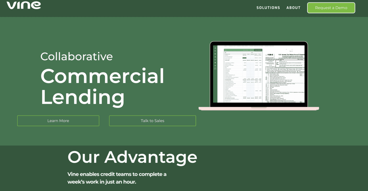 Vine Monetary allows lenders to scale business portfolios with out including workers, speed up deal approvals, and undertake responsibly—turning underwriting from a handbook bottleneck right into a strategic benefit. The corporate’s platform lets financiers and debtors collaborate extra successfully, orchestrating the method to make sure that offers circulate easily.